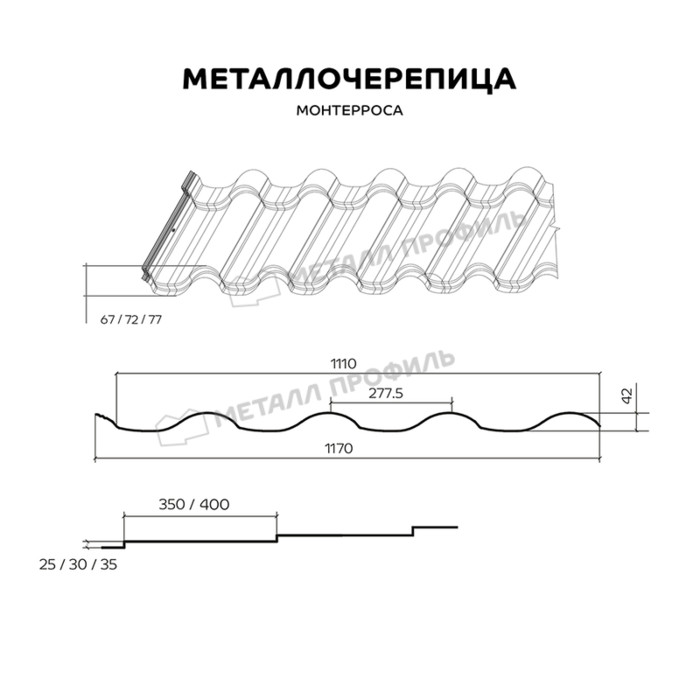 Металлочерепица Металл-Профиль Монтерроса-X 0,5 PURETAN® RR 35 Синий