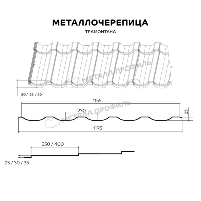 Металлочерепица Металл-Профиль Трамонтана-ML 0,5 PURETAN® RR 35 Синий
