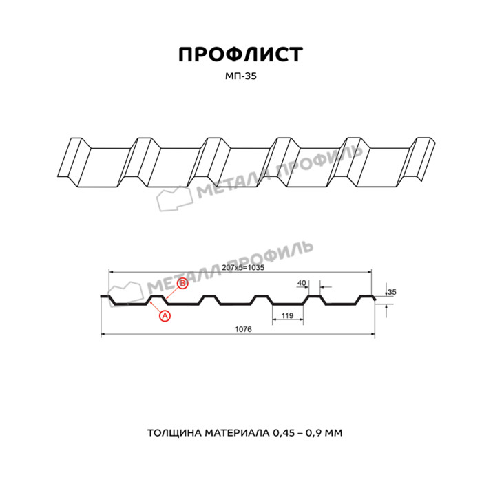 Профлист Металл-Профиль МП-35 Цинк 0.6 мм Бесцветный